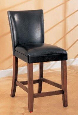 Dimensions: 19"L x 24"W x 44 1/2"H.Finish: Black, Cherry. Material: Birch Solid, Veneer, Leather Like Vinyl. Set of 2 29"H Bar Stools Black Leather Like Cherry Finish. Features a soft cushion padded seat and back wrapped with black leather. like vinyl upholstery.Combination of clean styling and gentle curves.Sophisticated rich color make this item to decorate your interior.Add this stylish, unique and great item to your dining room.Also available in brown vinyl and taupe microfiber.Assembly required. Read more...Coaster Bar Stools, Black Leather Like Cherry Finish, 29-Inch Height, Set of 2 Specification