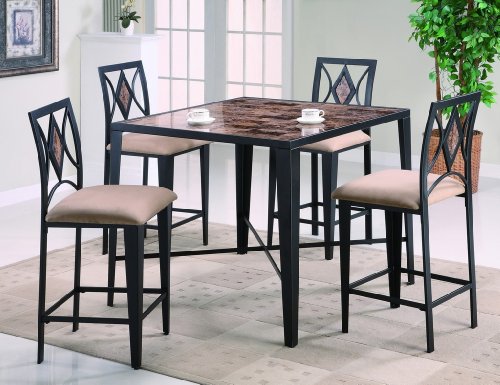 The 5-Piece Counter Set by Crown Mark is a comfortable and elegant selection at a discounted price. Featuring solid wood counter height table and chairs, this dinette set comes in a black finish with a faux marble table top. Dimensions:Grayson 5-piece Counter Height Table Set By Crown Mark Furniture Features